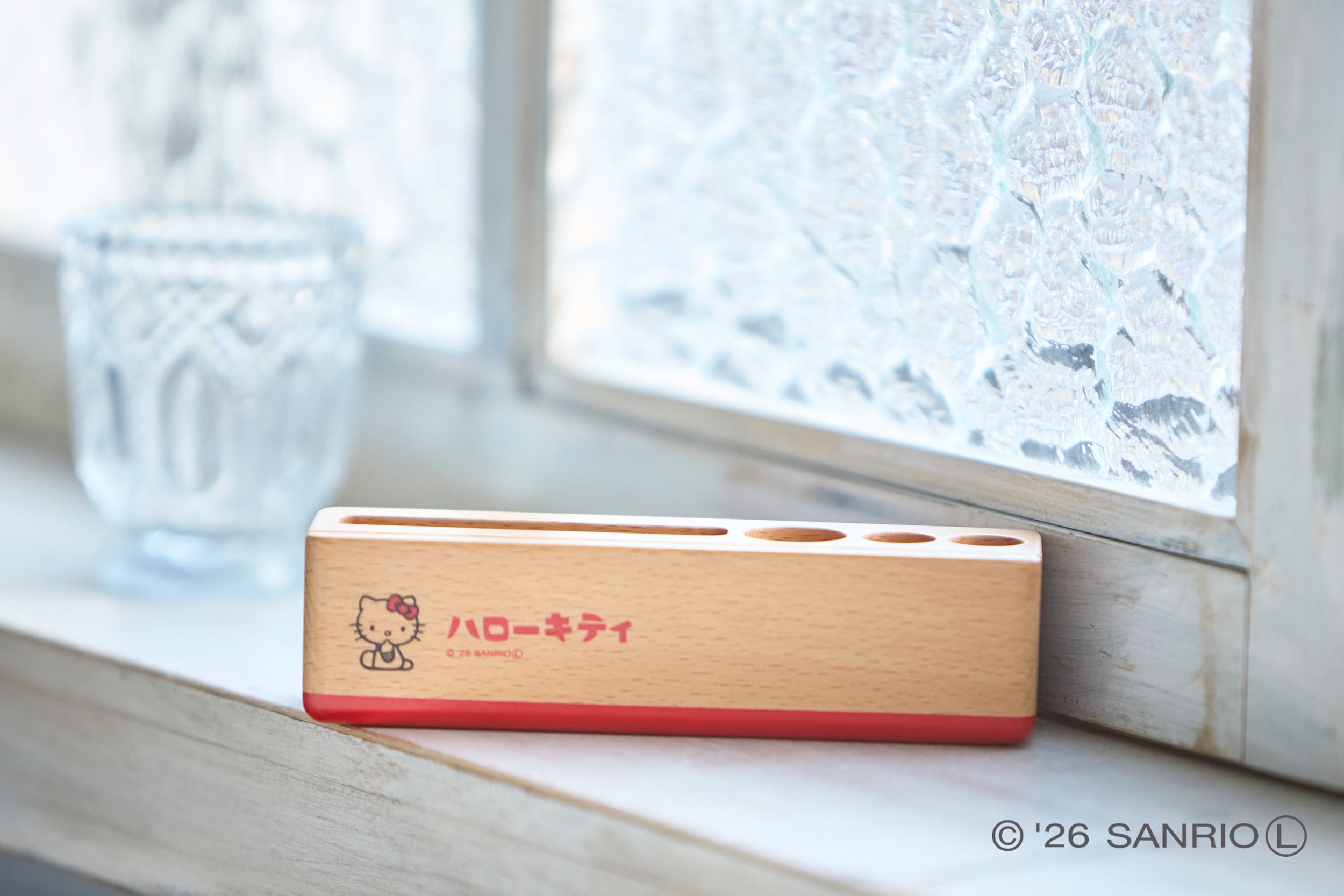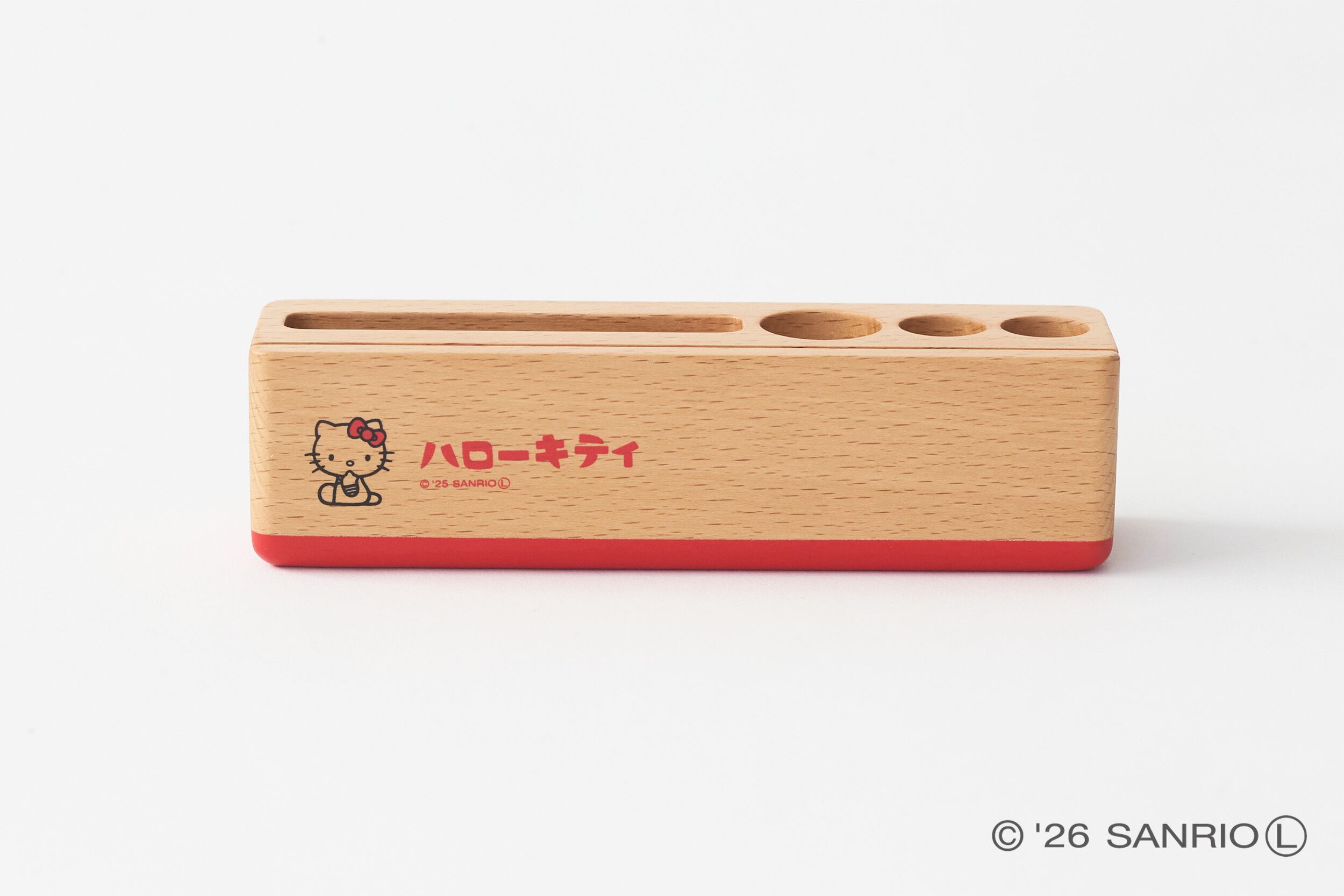 シンプルな形状に、キティちゃんのイラストと赤のカラーリングが映えるデスクスタンド。