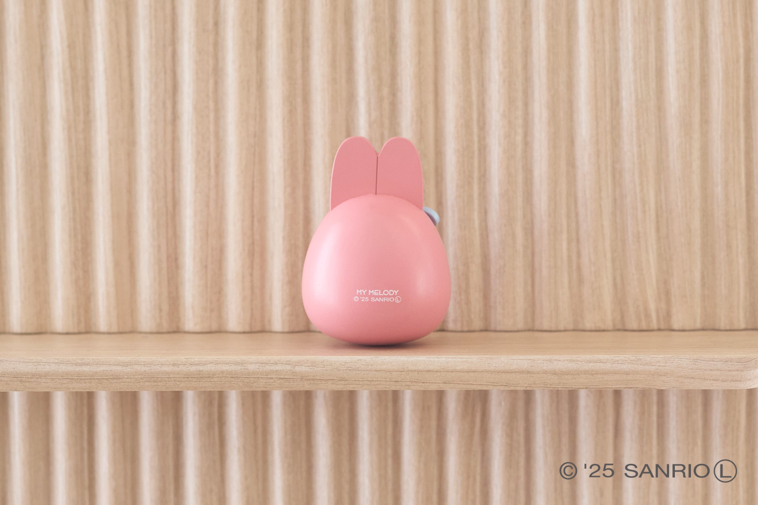 ころんとしたフォルムと、マイメロディの愛らしいデザインが融合した商品で、青いリボンが立体的に再現されているのがチャームポイントです。