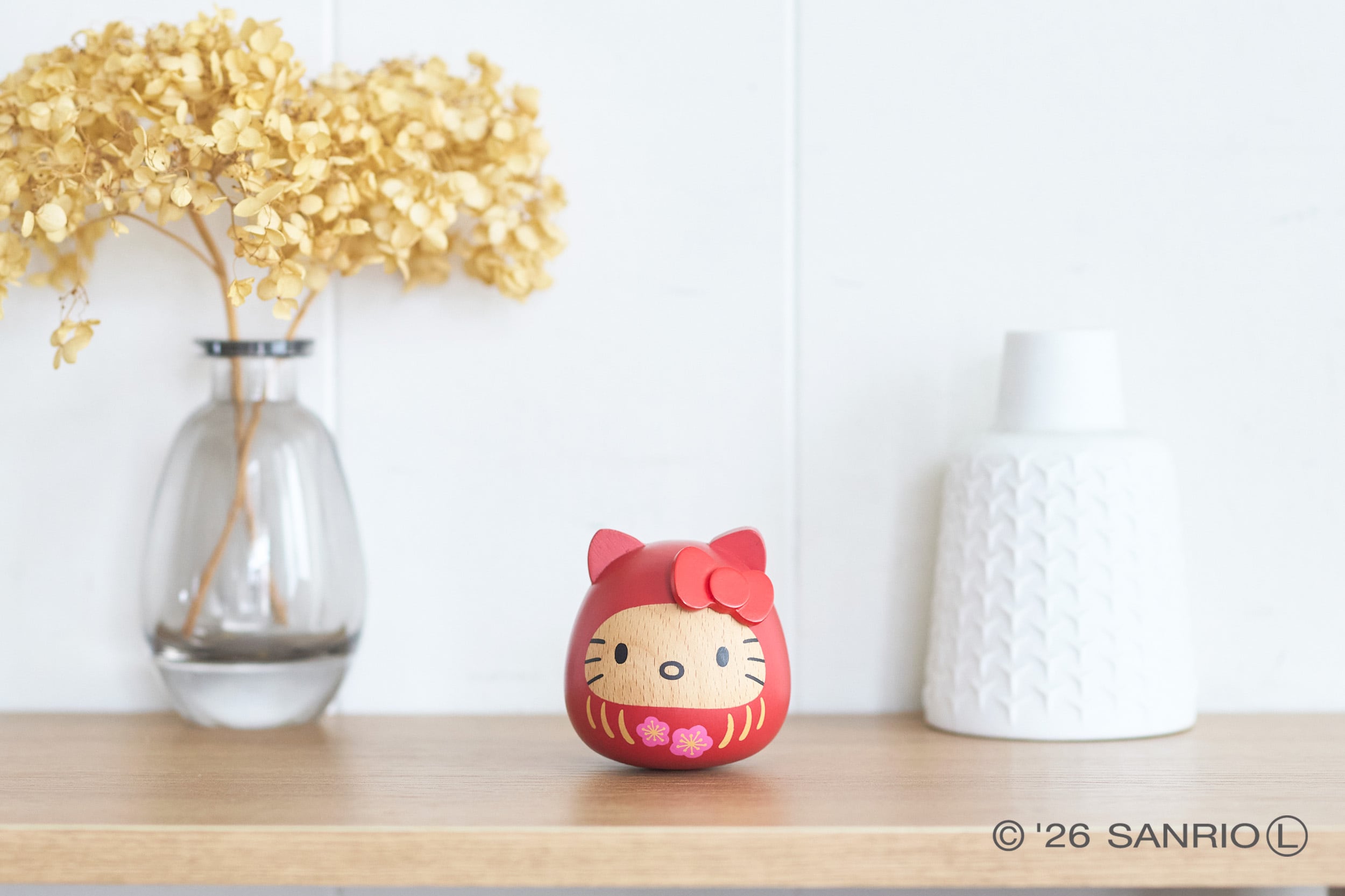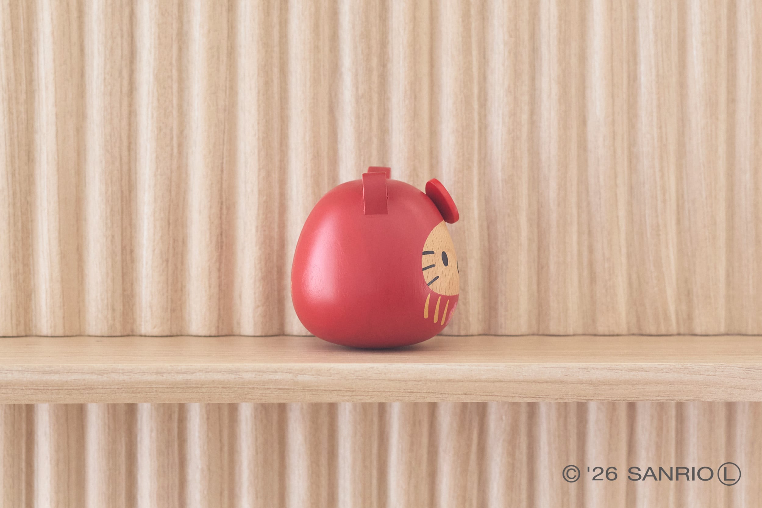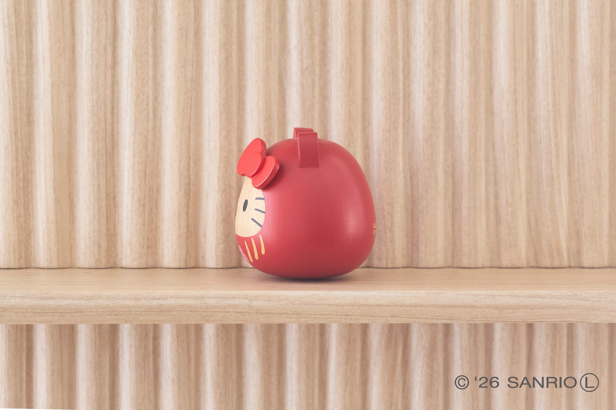 温かみのある木製で作られたハローキティのだるまは、手に取るたびにそのぬくもりを感じられます。