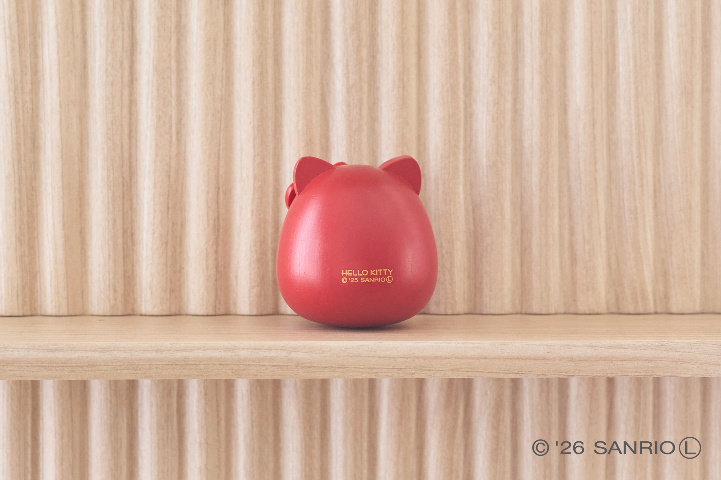ころんとしたフォルムと、ハローキティの愛らしいデザインが融合した商品で、立体的な真っ赤なリボンがチャームポイントです。