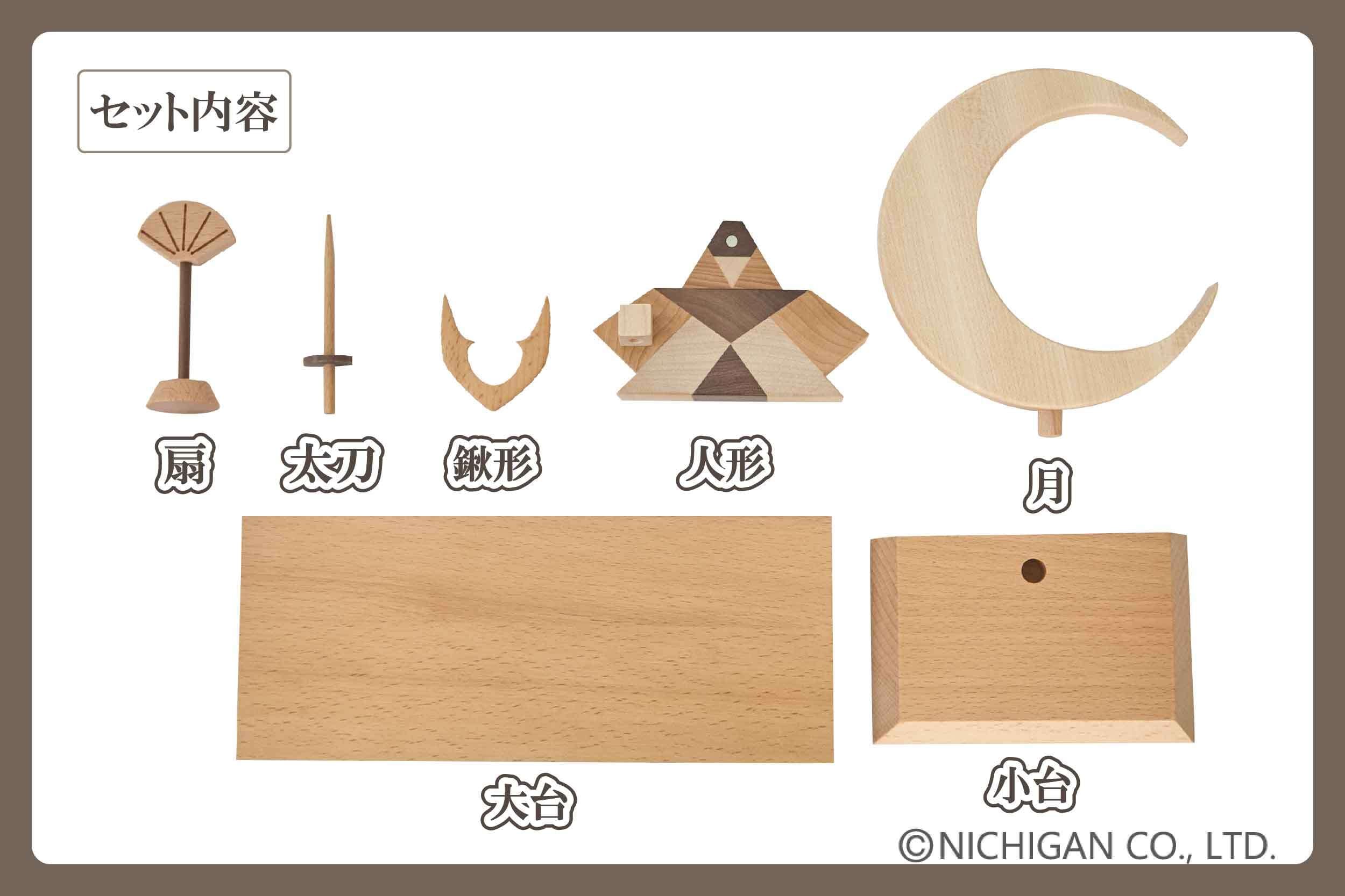 セット内容 人形×1、鍬形×1、刀×1、扇×1、月×1、小台×1、大台×1