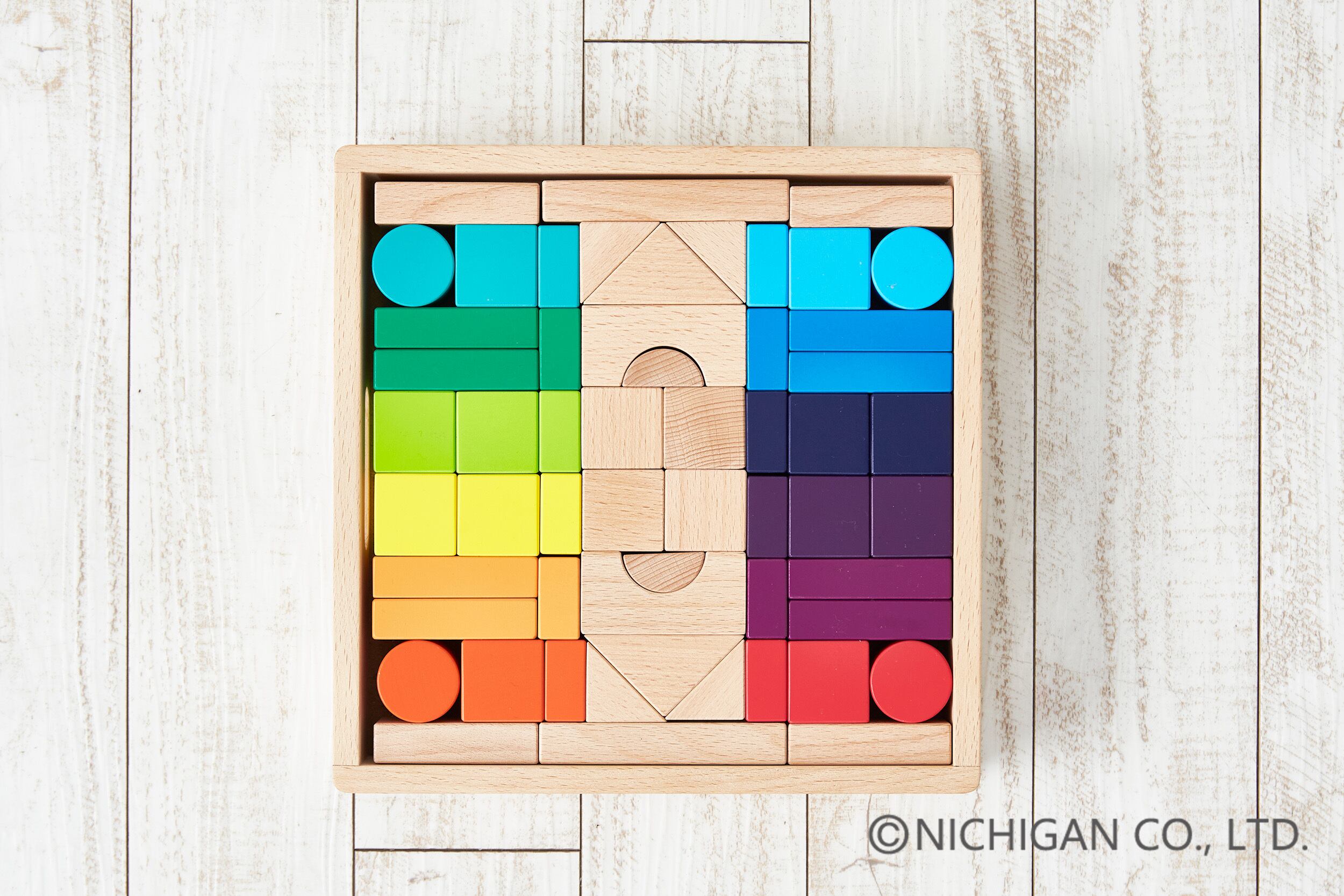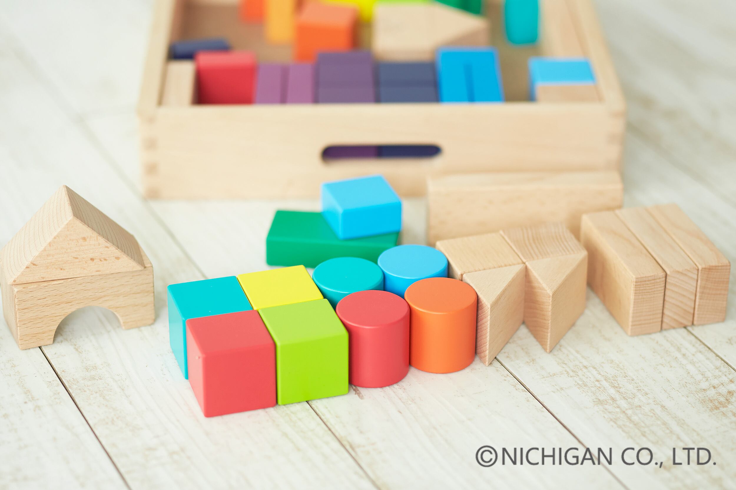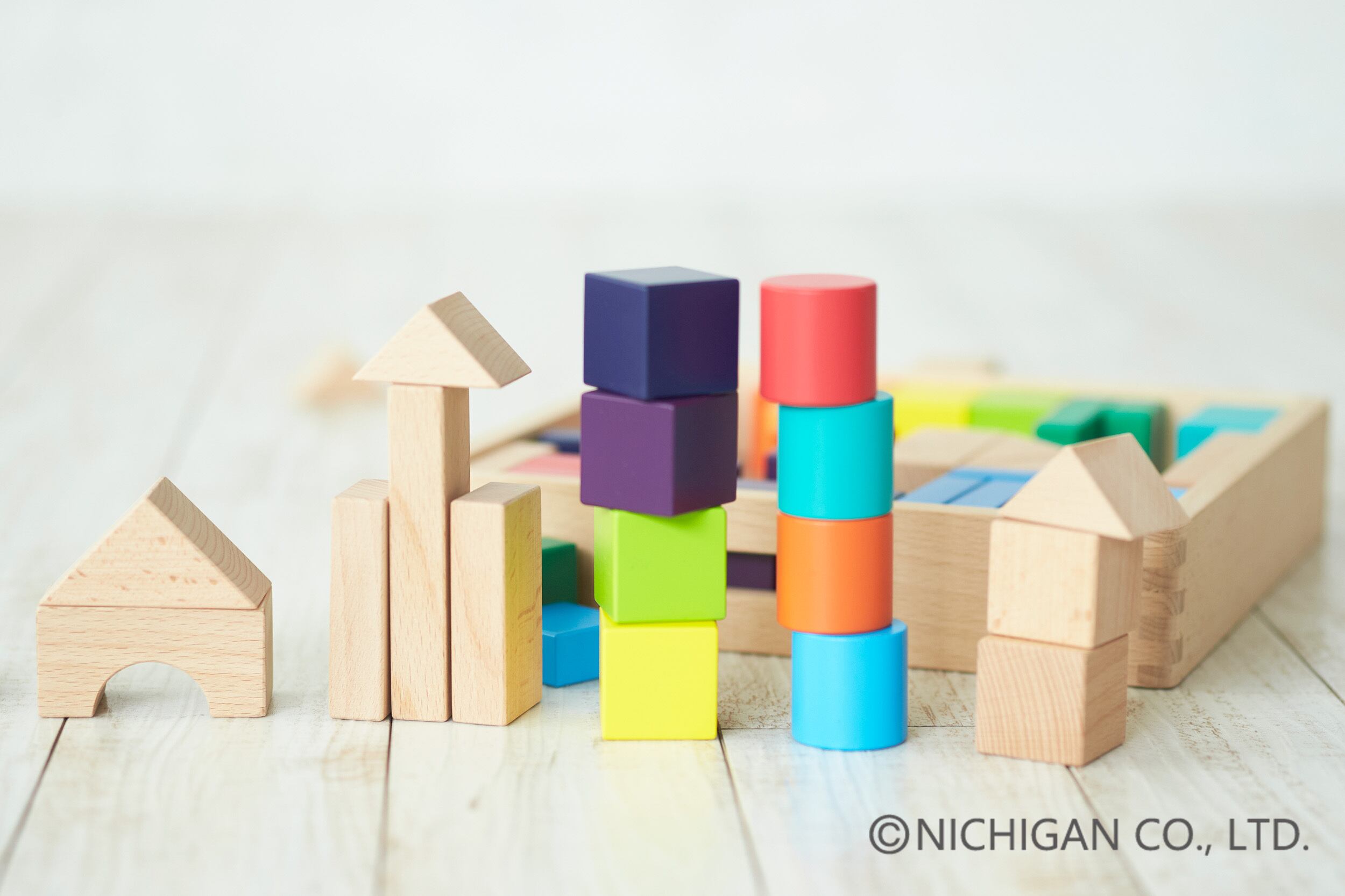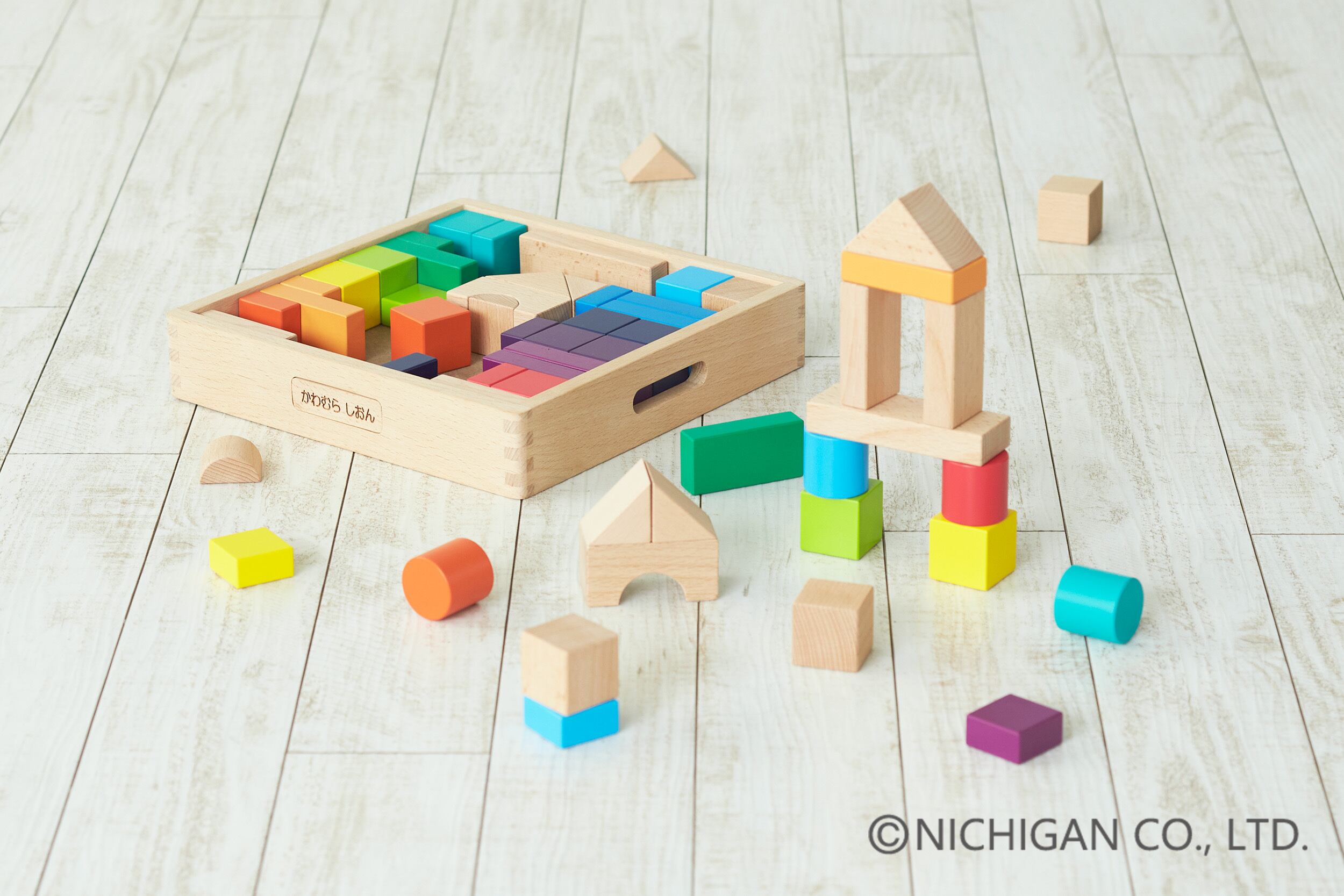 12色相環を元に色彩感覚を育む感性豊かな造形玩具です。通常のカラーつみきでは平均4色くらいを使用していますが、このつみきでは12色を使用しました。組み立て遊びと共に色遊びが出来る鮮やかな色と白木が美しい35mm基尺のつみきです。名入れサービスを使って世界で一つのオンリーワンの商品にすることができます。