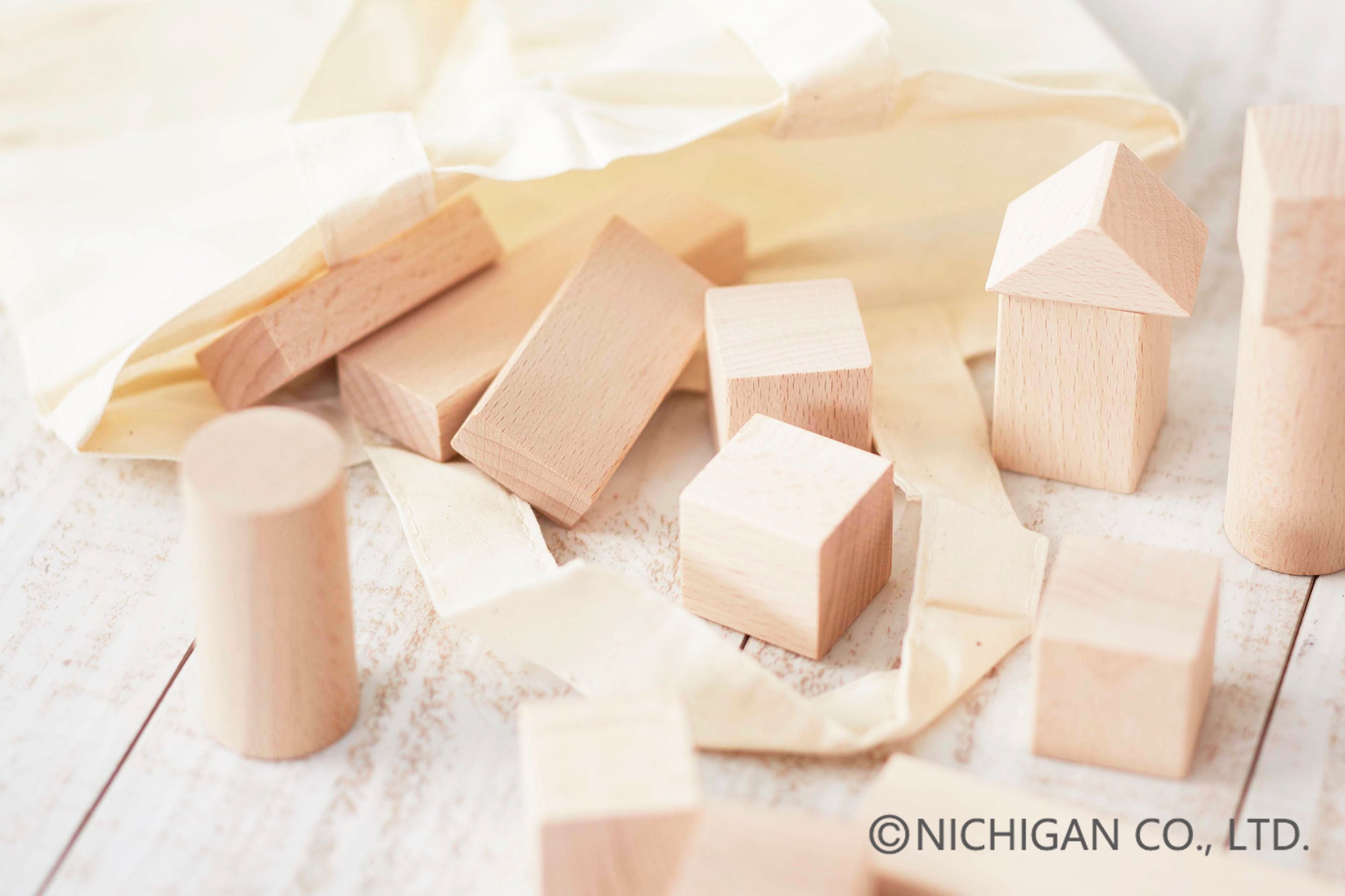 自然素材の天然木仕様で穏やかな手触りです。つみきを2つ、3つと積んで遊ぶことでお子様の数学的思考を養えます。