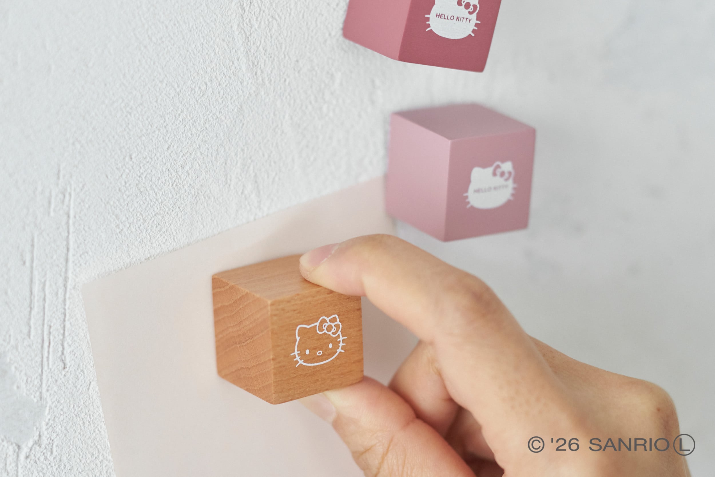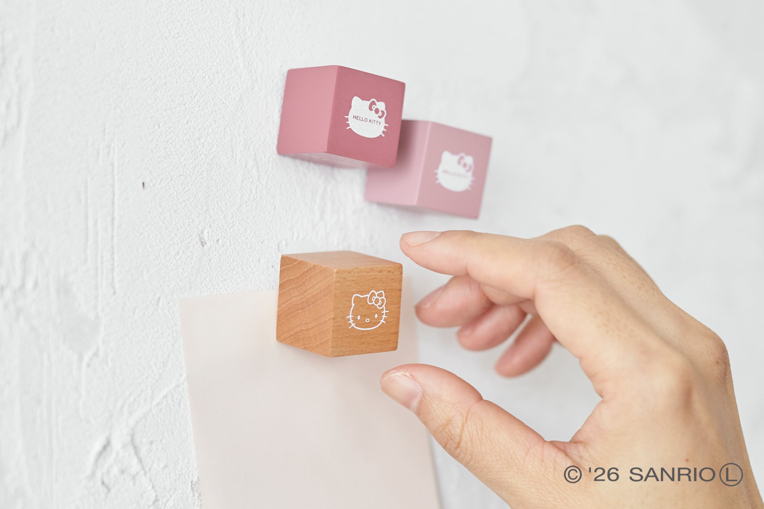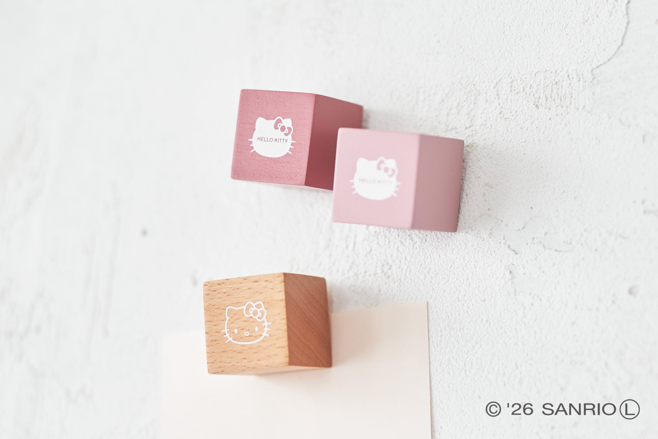 ナチュラルな木の質感とスモーキーピンクのカラーリングがマッチしたキューブ型のマグネット。立体感のある形が目を引くデザインで、おうちやオフィスで活躍してくれます。マグネットは3個セット。