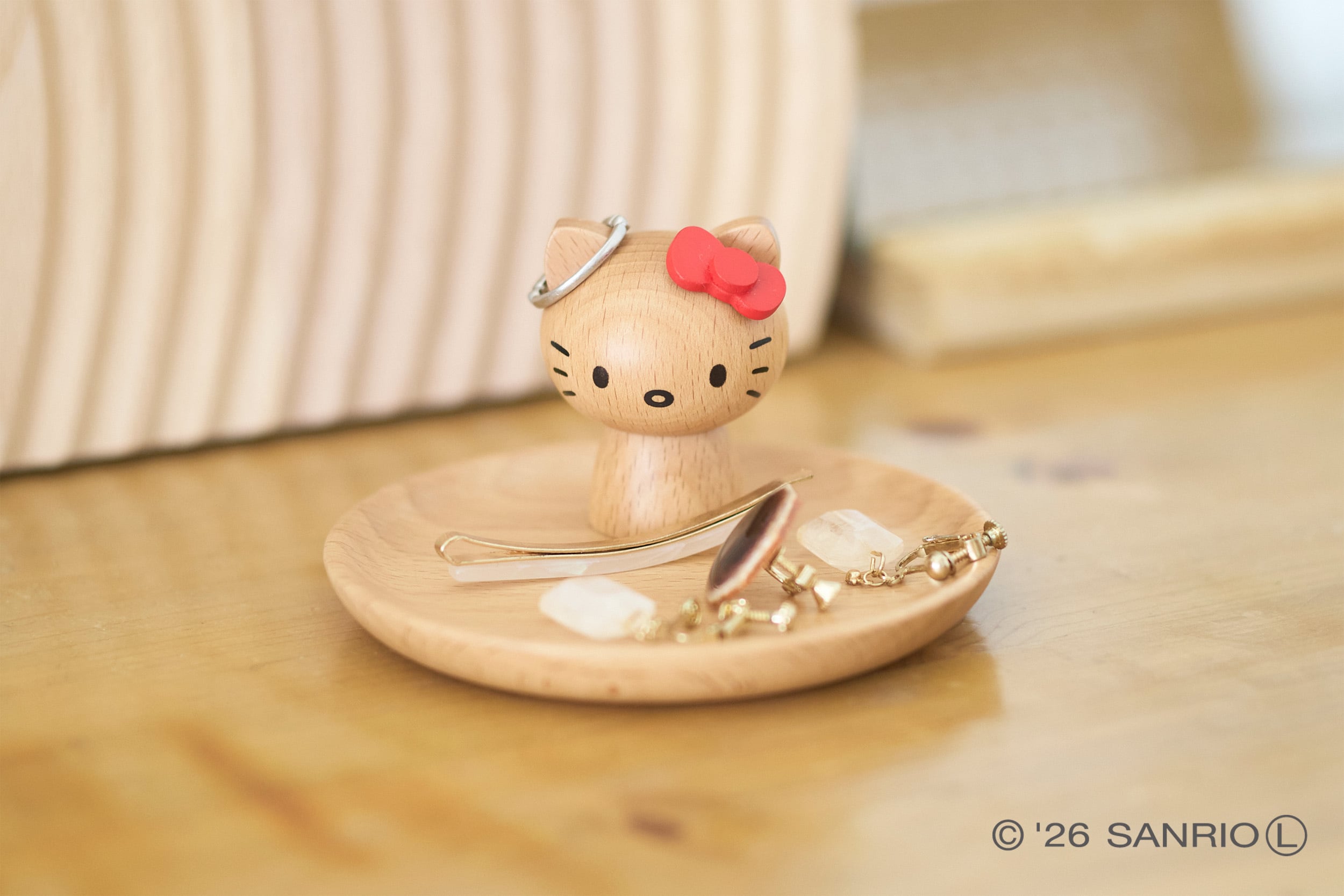 立体のキティと真っ赤なリボンが目を引くアクセサリースタンド。実用性もありながら、インテリアのアクセントにもなってくれるアイテムです。